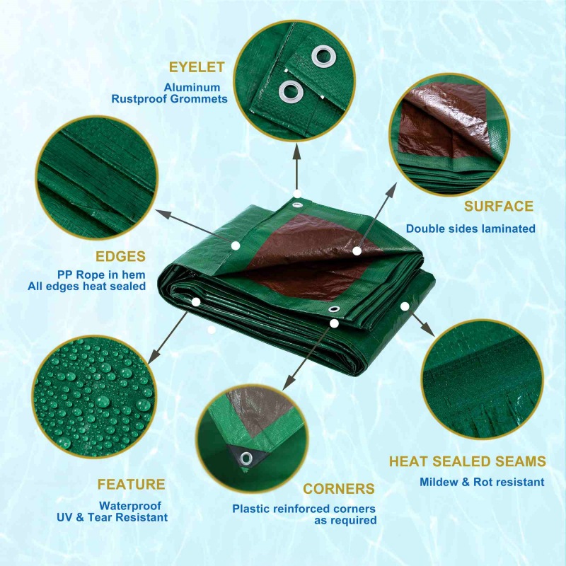 8'x10' 110GSM hnedá zelená PE plachta na ochranu krytu